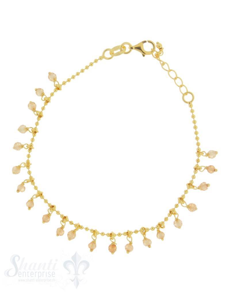 Armkette Si-Kügeli mit vielen Anh. Champager Zirkon gefärbt fein Grössen verstellbar 17-19 cm