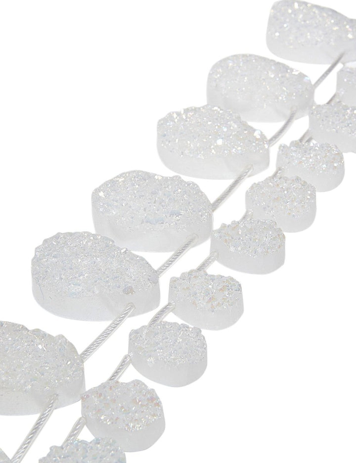 Verleihen Sie Ihrem Look mit dem Chalcedon Kristallin Briolette in Weiß eine elegante Note. Mit einer Länge von 21 cm ist dieses Schmuckstück ein zeitloses Accessoire, das Ihrem Outfit einen Hauch von Stil verleiht.