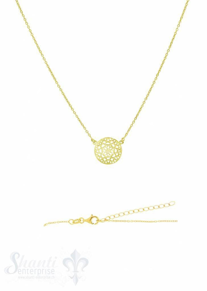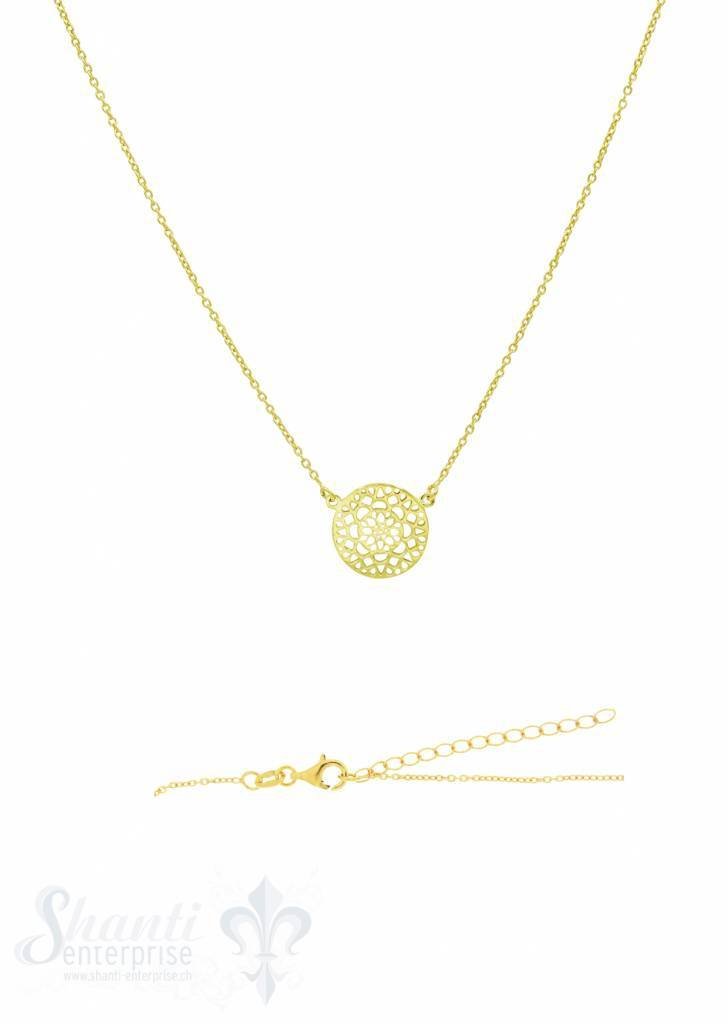Silberhalskette: Ankerkette fac. mit Blumenscheibe Grössenverstellbar 38 /42 cm