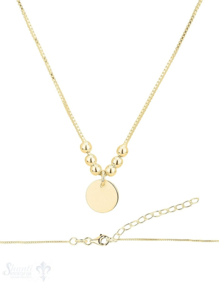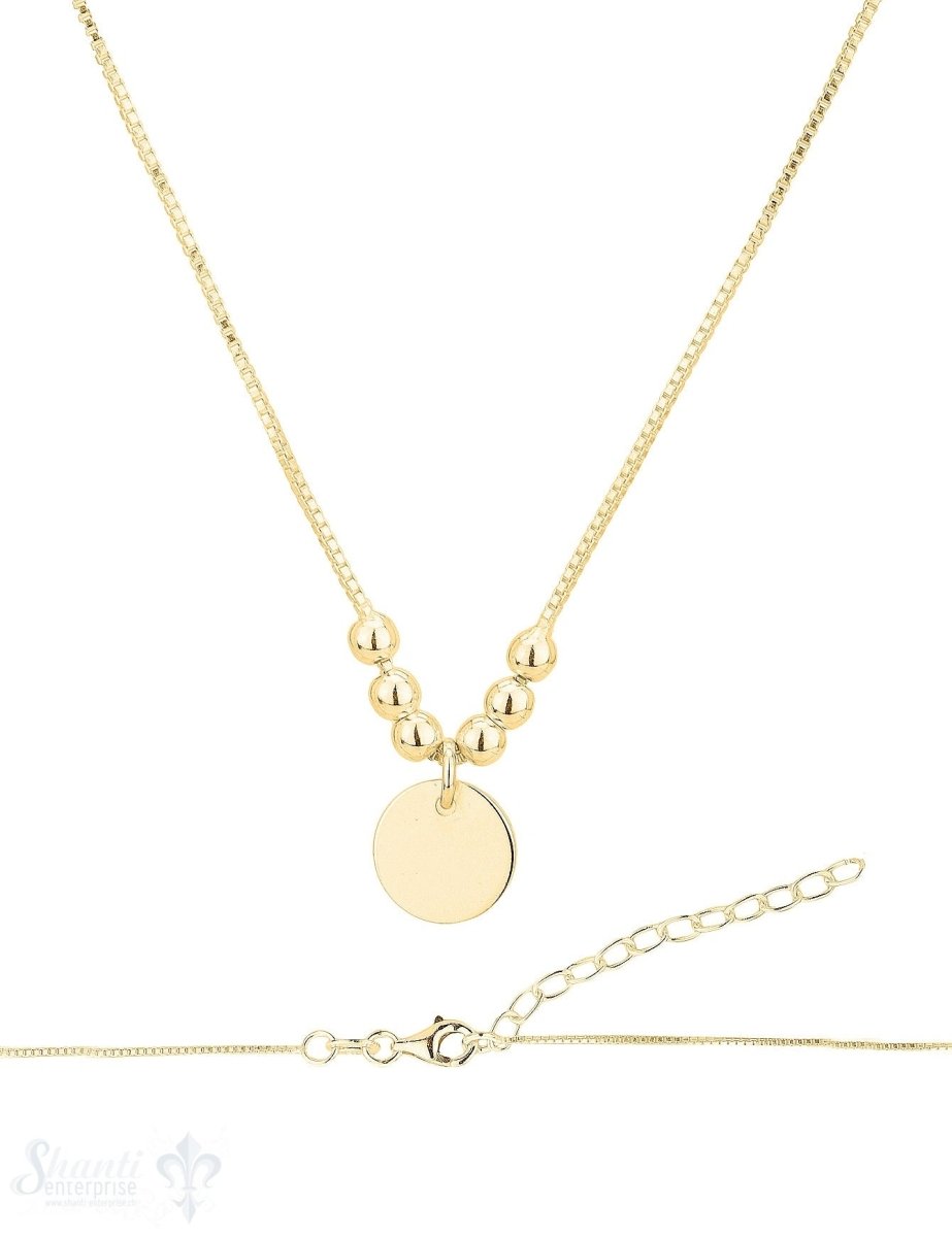 Silberkette mit Plaquette und Kugeli 36-42 cm Venezianer Grössen verstellbar Karabiner ec