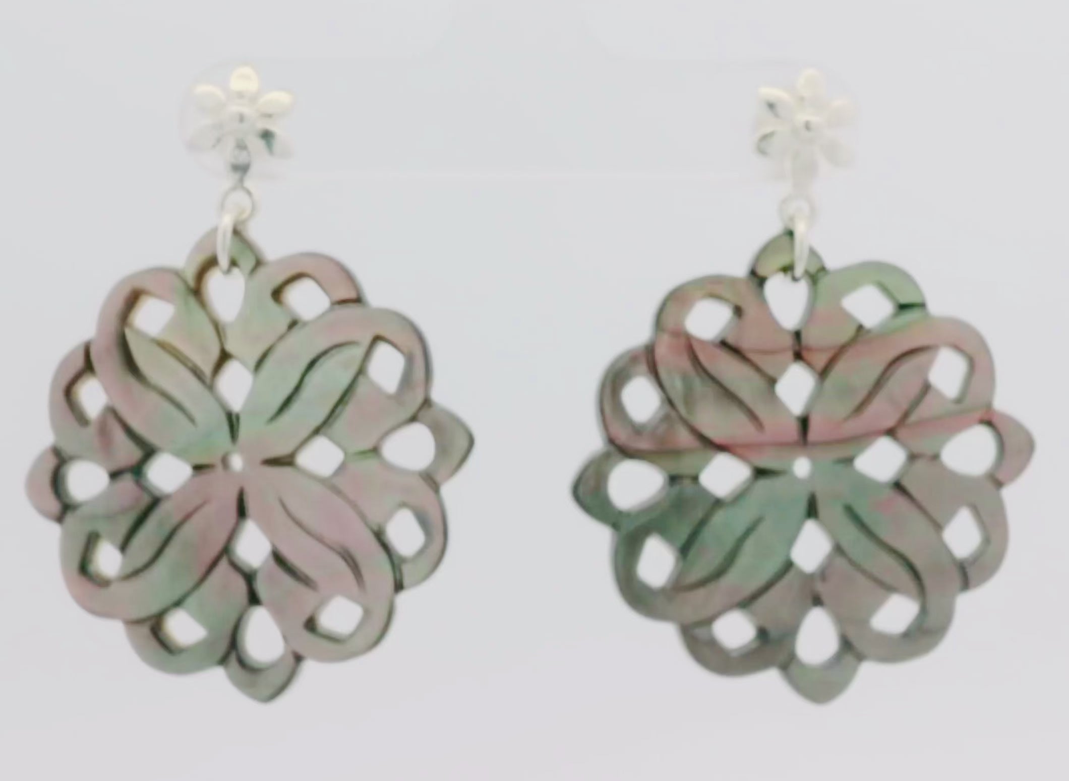 Perlmutt Blume 30 mm Ohrstecker braun schimmernd durchbrochen mit Blumen Brisur Silber 925