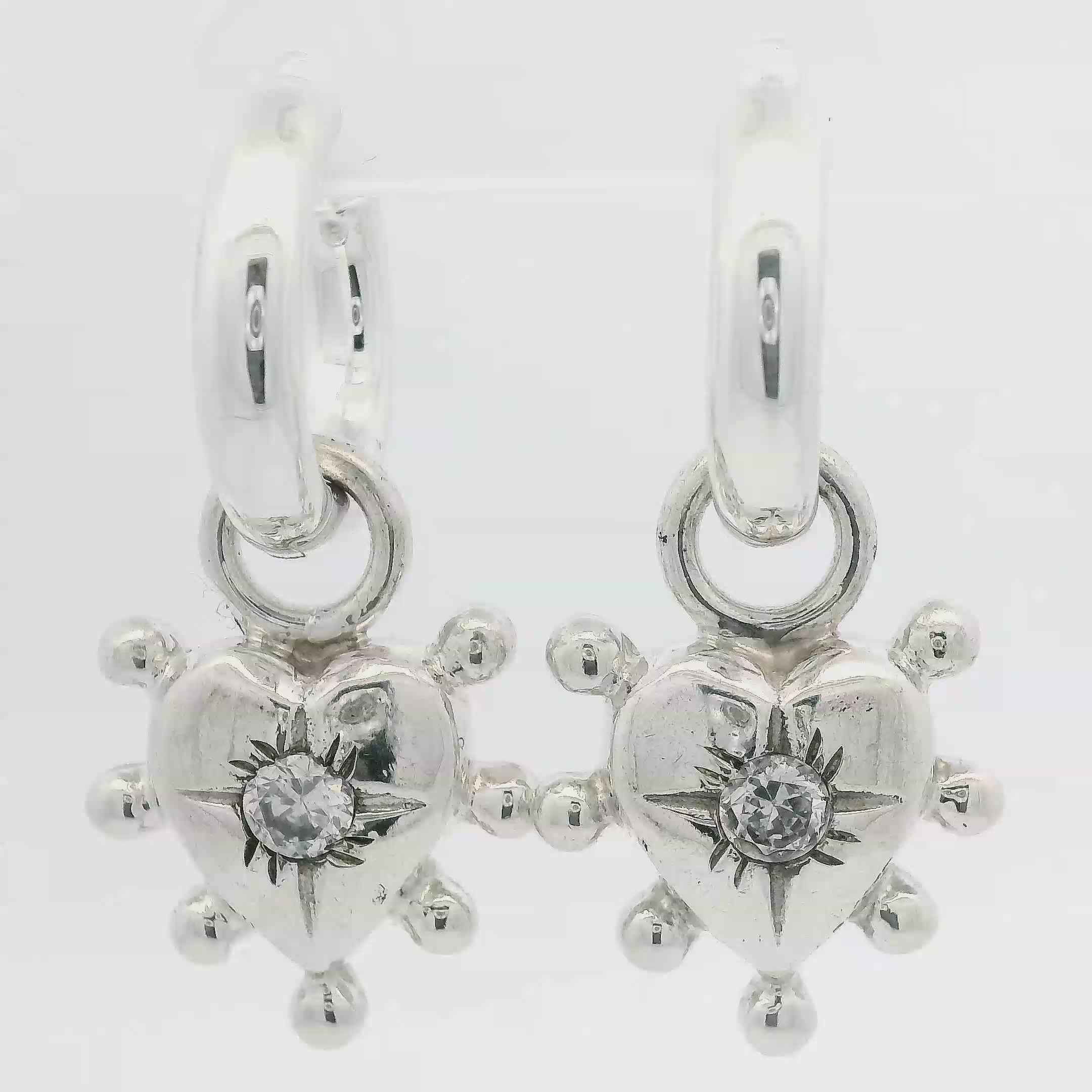 Creolen 18 mm mit Anhänger Herz 18 mm mit Zirkonia 4 mm massiv Rand mit 2.5 mm Kugeln