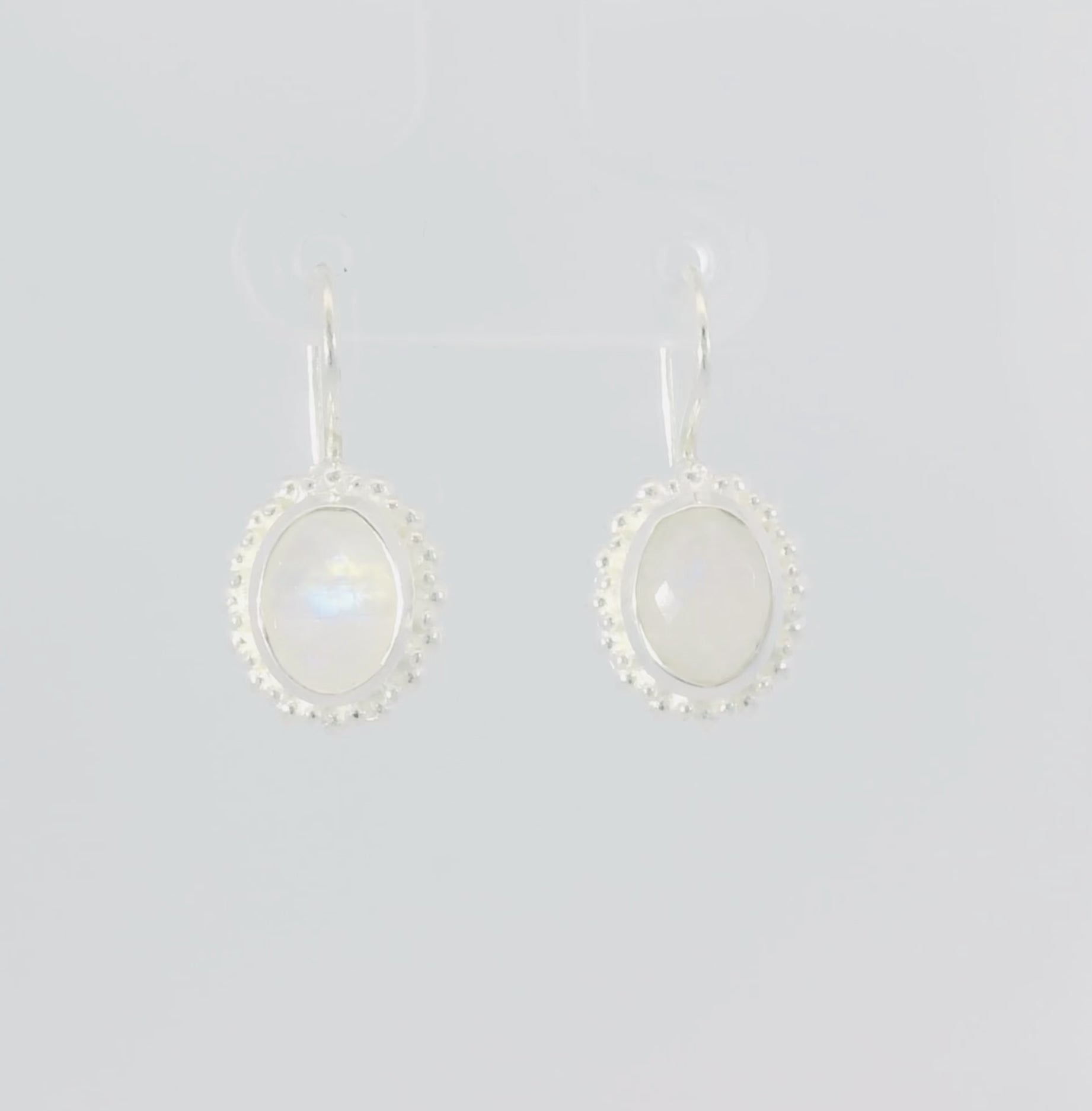 Ohrhänger Silber facett.oval 12x10 mm Fassung zweireihig fein getupft mit Bügel fix