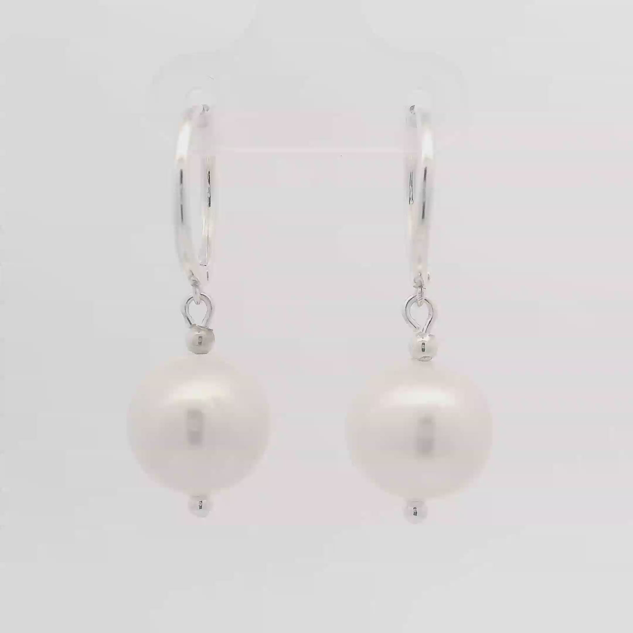 Perle weiss 12 mm Ohrhänger an 14 mm Creolen mit Steck - Verschluss - Shanti Enterprise AG