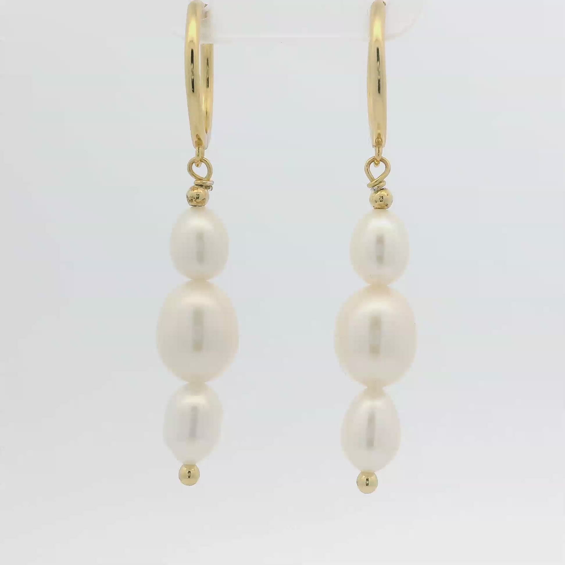 Perlen oval weiss Ohrhänger an 14 mm Creolen - Shanti Enterprise AG