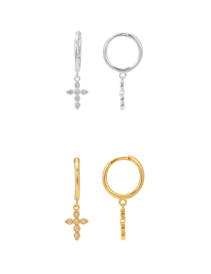 Zirkonia Kreuz weiss 8x6 mm an Creolen 11 mm poliert mit Steck-Verschuss
