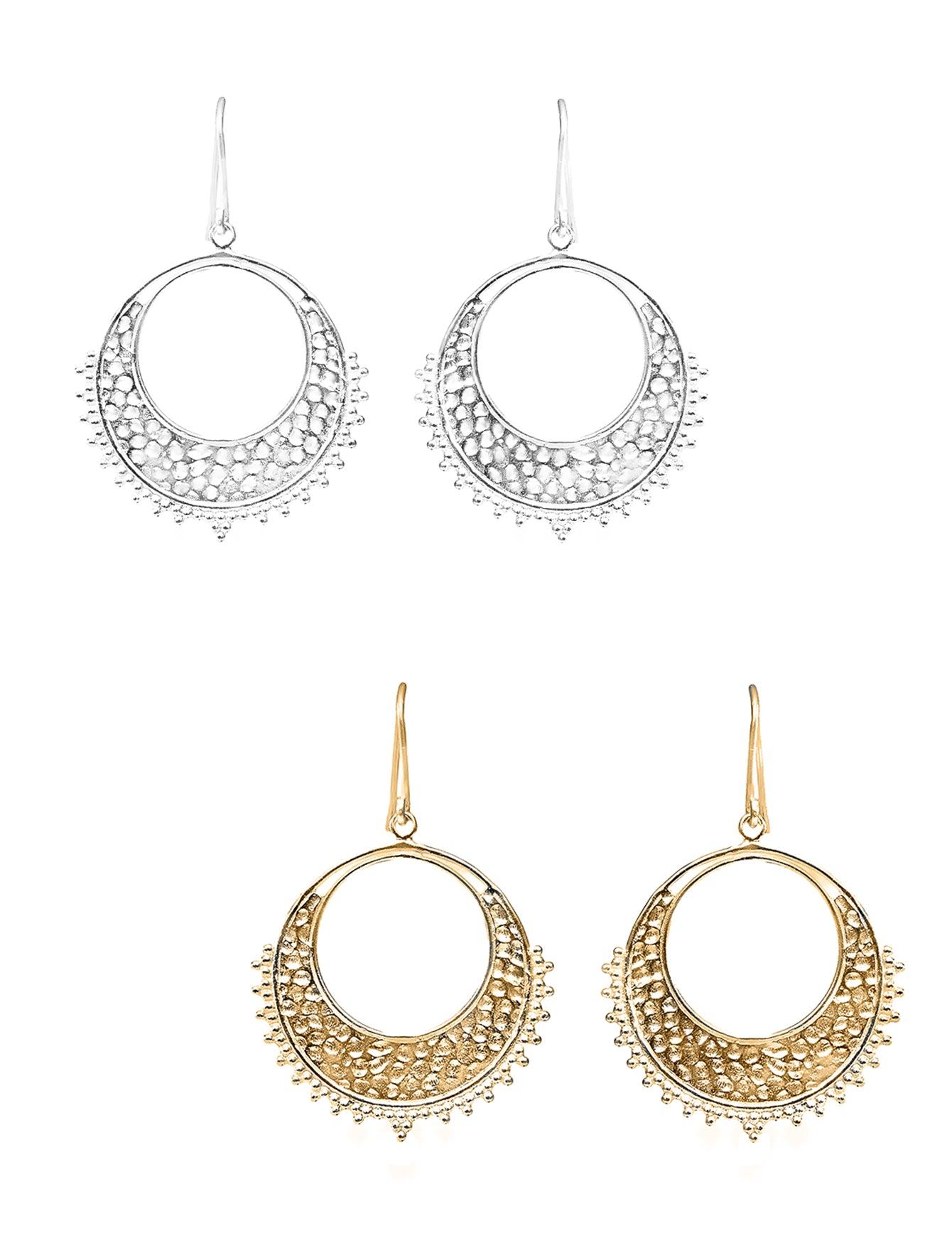 Diese Halbmond 30 mm Ohrhänger sind wahre Kunstwerke. Das gehämmerte Design verleiht ihnen eine einzigartige Textur, während der Bügel sie zu einem echten Hingucker macht. Erhältlich in Silber oder vergoldet sorgen sie für stilvolle Vielseitigkeit. Perfekt für den täglichen Gebrauch oder besondere Anlässe.
