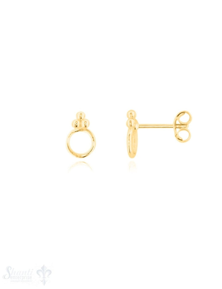 Ohrstecker Silber hell Kreis offen mit 3 Punkten verziert 6x9 mm