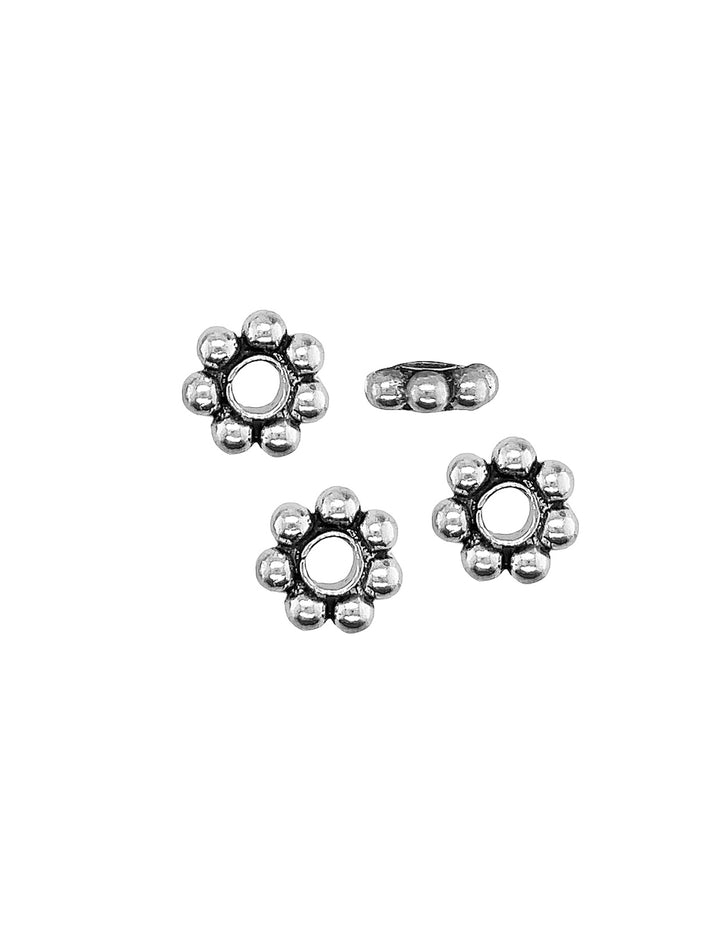 Verleih deinen Kreationen mit dem flachen Silber Kugelkranz von Blumen Element das gewisse Etwas! Ein Pack enthält ca. 50 Stück dieser hochglanzpolierten, ab 3 mm flachen Perlen aus 925er Silber, insgesamt etwa 3 Gramm. Ideal für deine Schmuckprojekte! 🌟