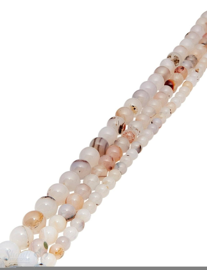 Achat Strang weiss poliert Kugeln braune Einschlüsse AA rund