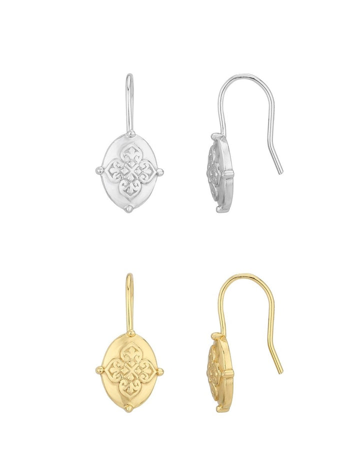 Amulett Plaquette 13x9 mm Ohrhänger verziert oval mit Bügel fix Silber 925 ec