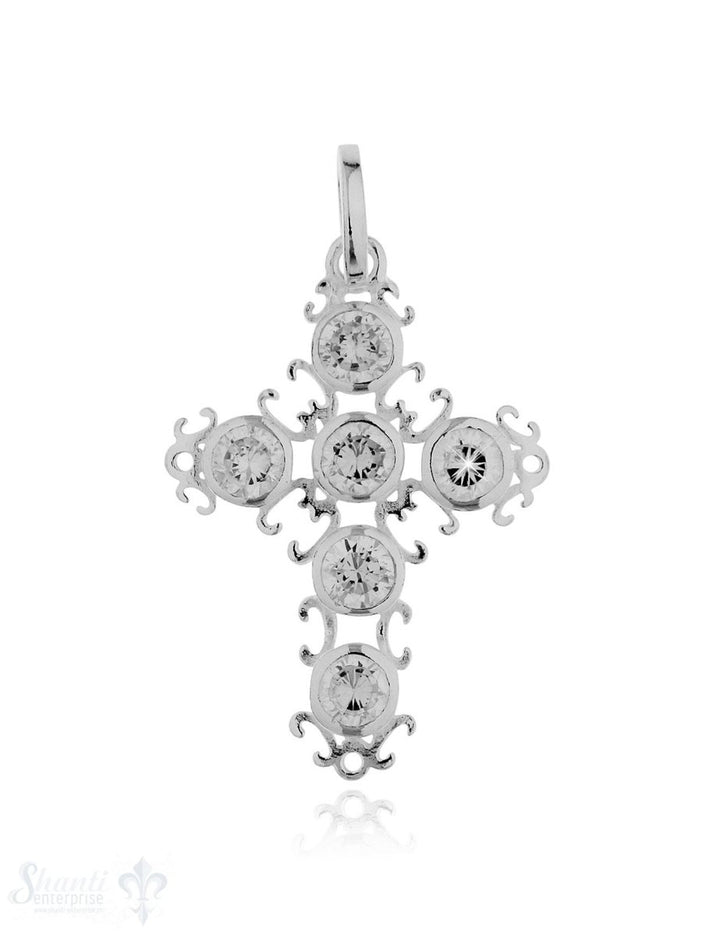Anhänger Silber Kreuz mit 6 Zirkonia weiss 30x21 mm