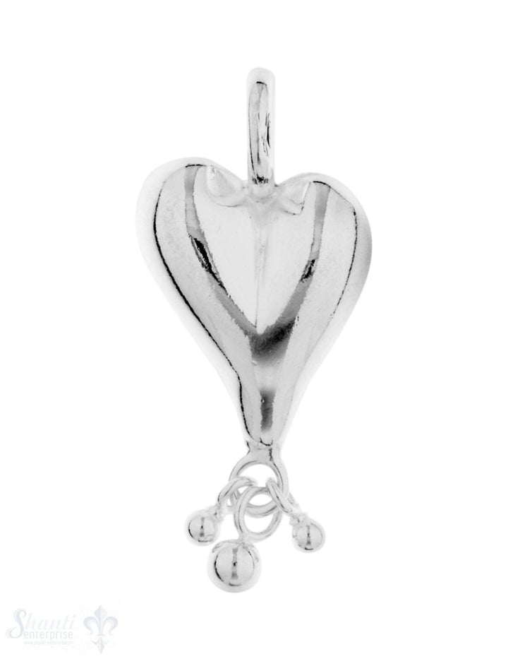 Anhänger Silber hell Herz asymetrisch mit Anhänger 28x13 mm