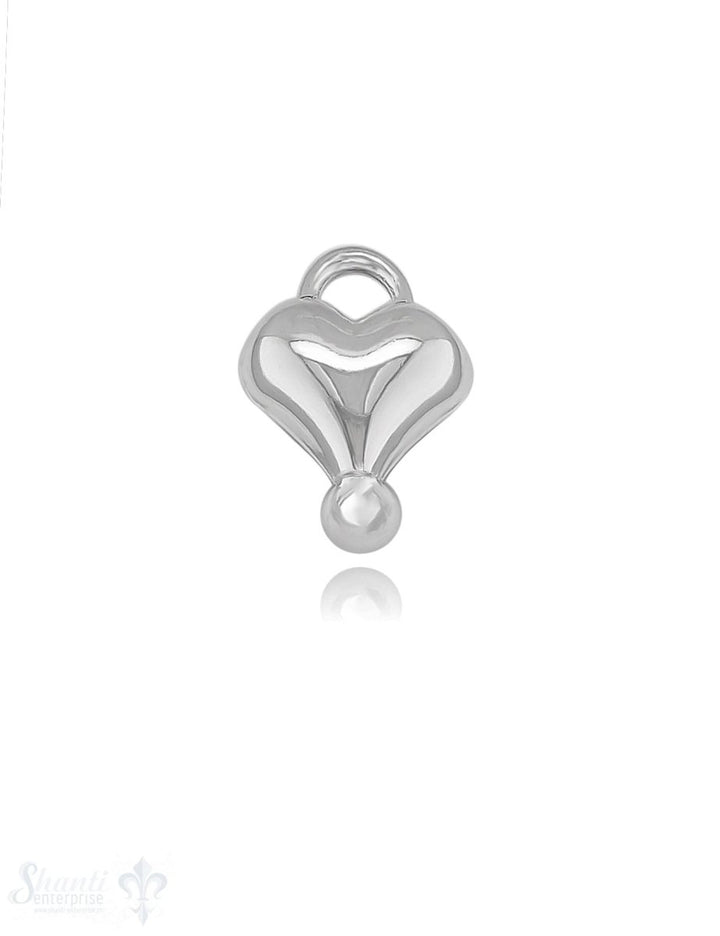 Anhänger Silber hell Herz mit Kugel unten Bügel oben 33x24 mm