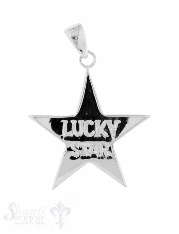 Anhänger Silber hell Stern "Lucky Star" 29 mm glat t Öse lose