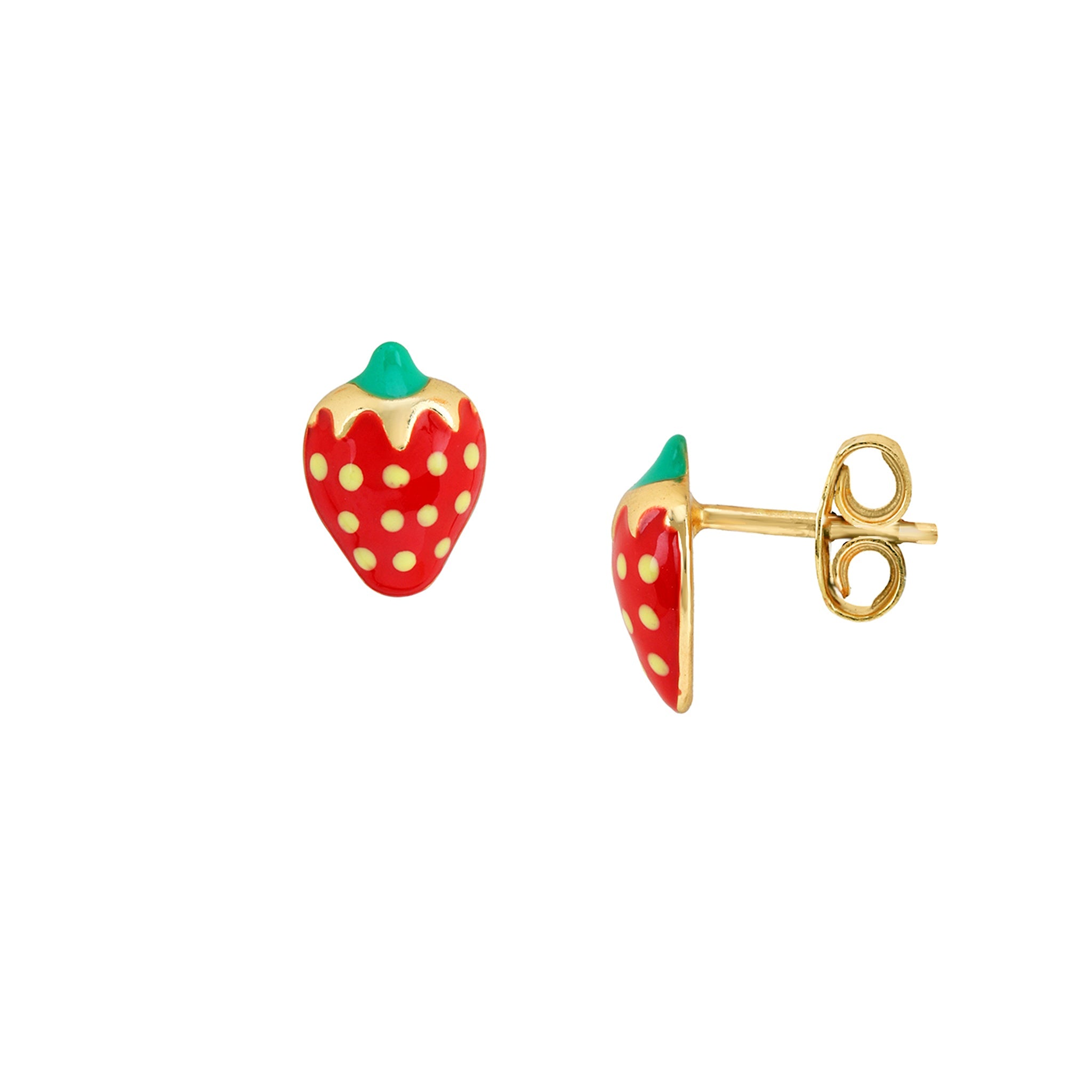 Erdebeer Ohrstecker 8x9 mm Kinder Schmuck Emaillle