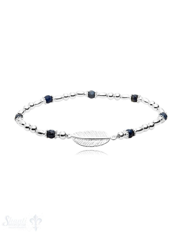 Feder mit Stein Armband Silber auf Elastik 4mm 18 cm