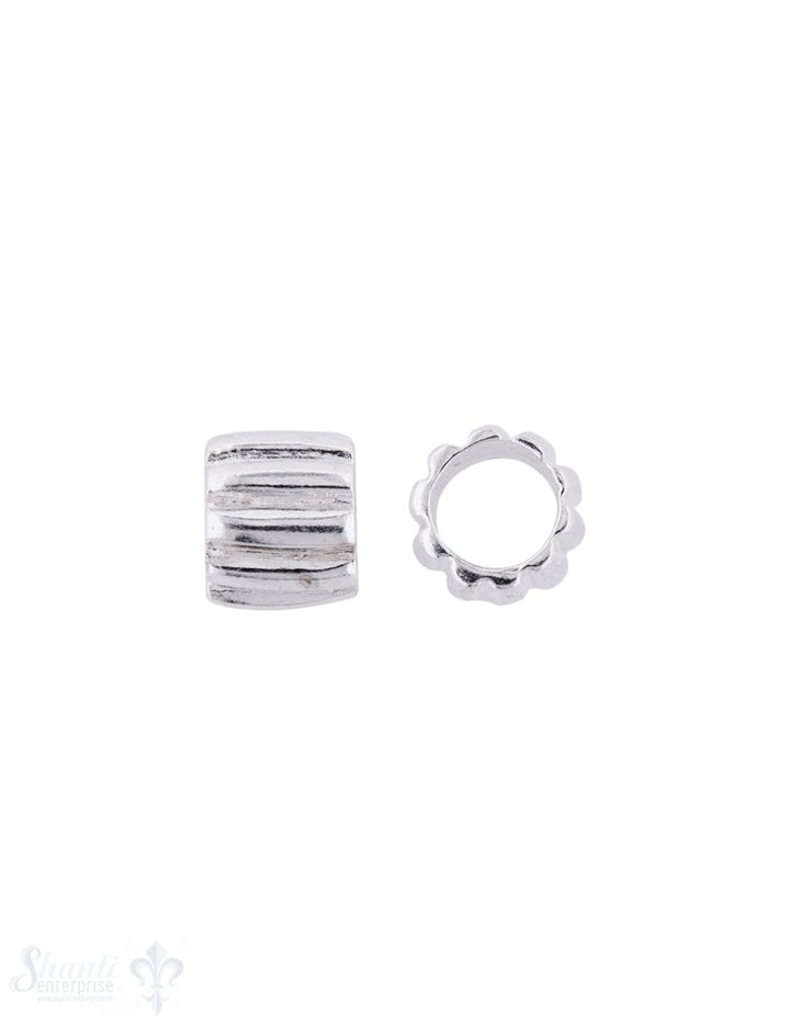 Grossloch-Zwischenteil Zylinder gerillt 7x6 mm ID 4.7 mm Silber hell Pack = 6 Stk. ca. 5 gr.