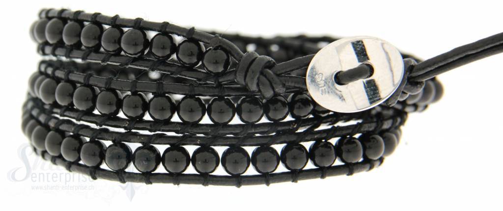 Leather Wrap Bracelet: Onyx 50 cm 3 x Handgelenk