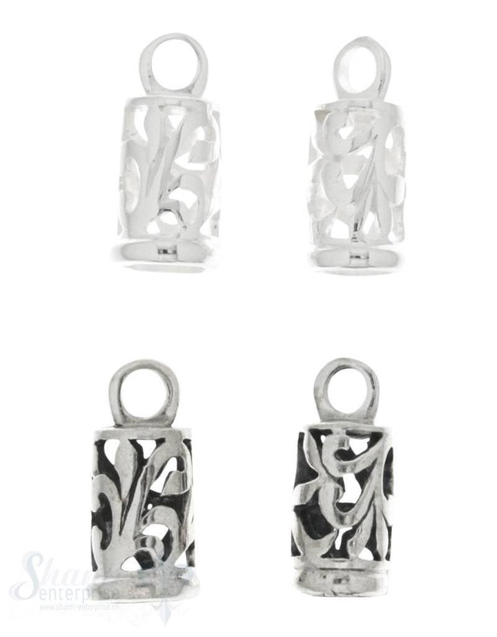 Lederkappe Silber rund verziert fixe Öse 1Pack = 2 Stk.