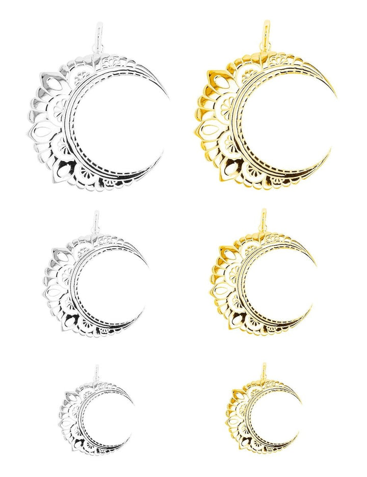 Mondsichel Anhänger verziert durchbrochen Öse oval
