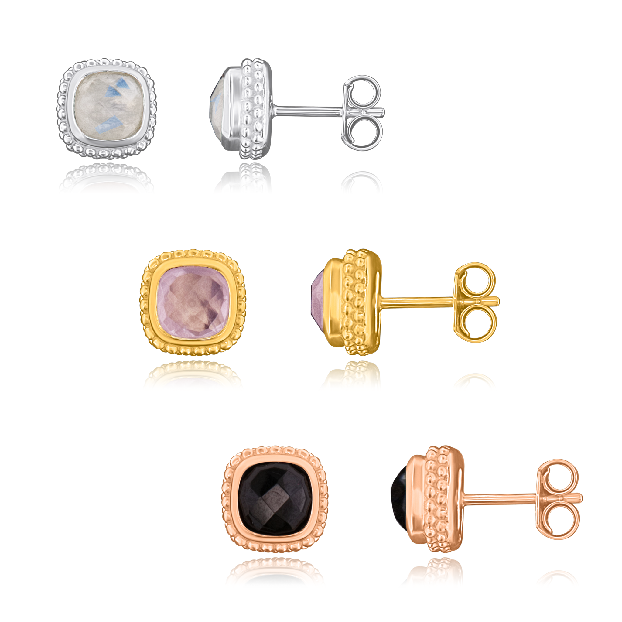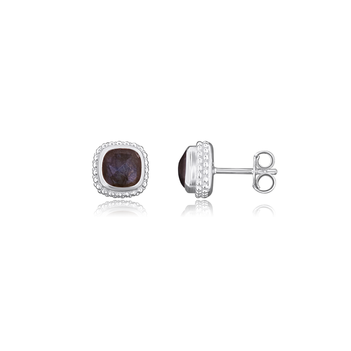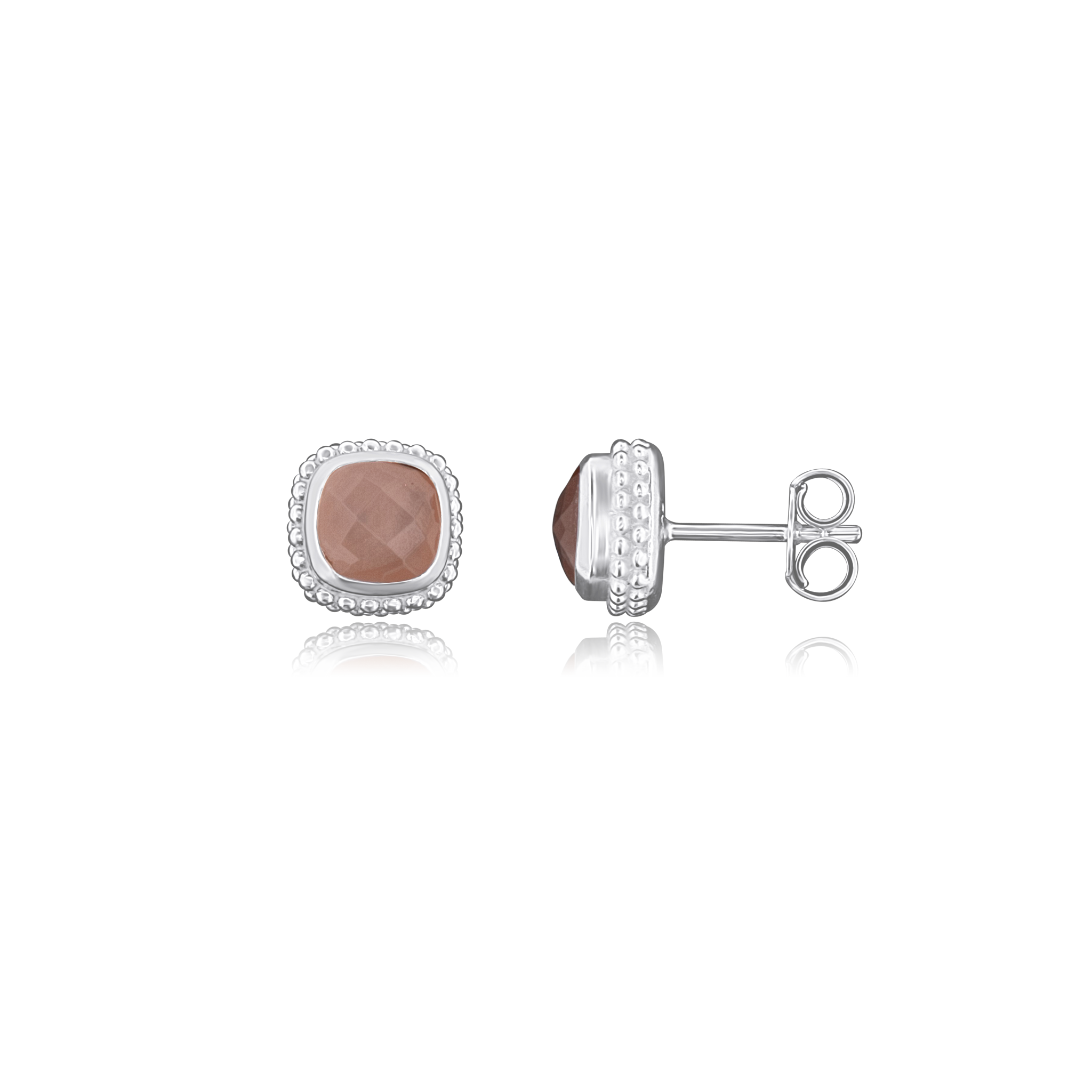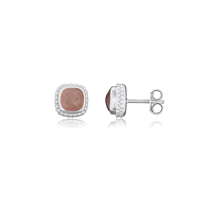 Tauchen Sie ein in die faszinierende Welt des Ohrschmucks mit unseren Silber Ohrsteckern! Diese funkelnden Ohrringe mit quadratischen, facettierten Regenbogen-Mondsteinen werden in doppelreihigen, gepunkteten 925er Silberfassungen präsentiert. Ein wahrhaft magisches Accessoire für Ihren Schmuckkollektion!