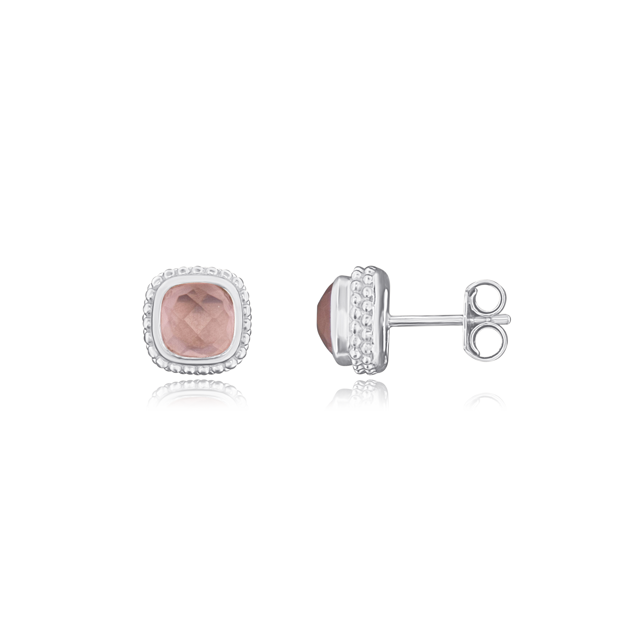 Ohrstecker Silber hell facettiert quadratisch Fassung doppelreihig gepunktet 9x9mm