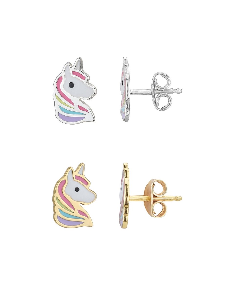 Pferdekopf Ohrstecker 9x6 mm Kinder Schmuck mit Emaille Regenbogen Farben Silber 925 ec - Shanti Enterprise AG
