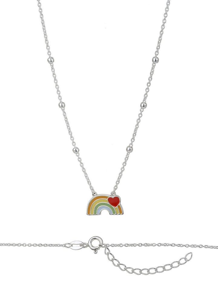 Regenbogen mit Herz Halskette Anker 34-38 cm Kinder Schmuck mit Emaille Regenbogen Farben Grösse verstellbar