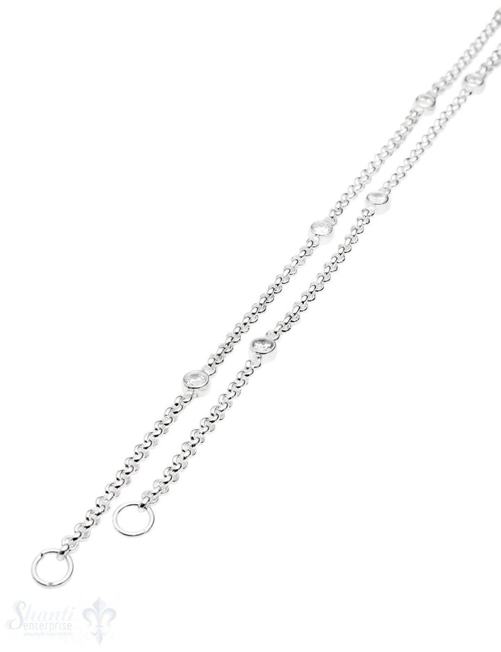 Silberkette Rollo 3,2 x1,2 mm mit Zirkonia weiss engmaschig mit Ösen 7.5 x 1.2 mm