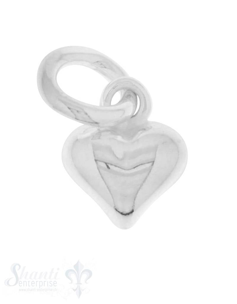 Silberherz bauchig klein poliert 7x6 mm, mit Oese