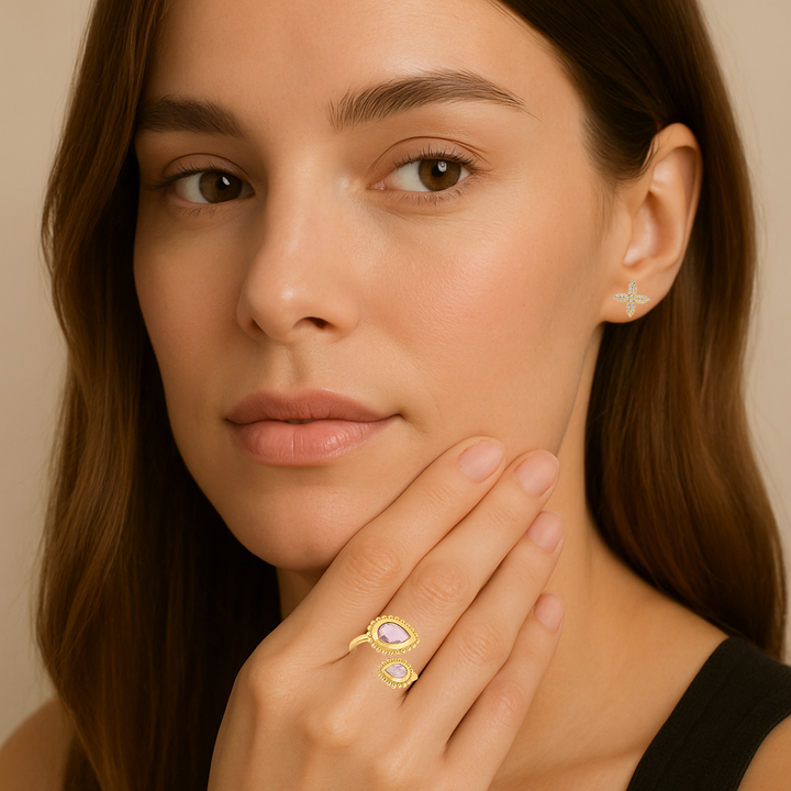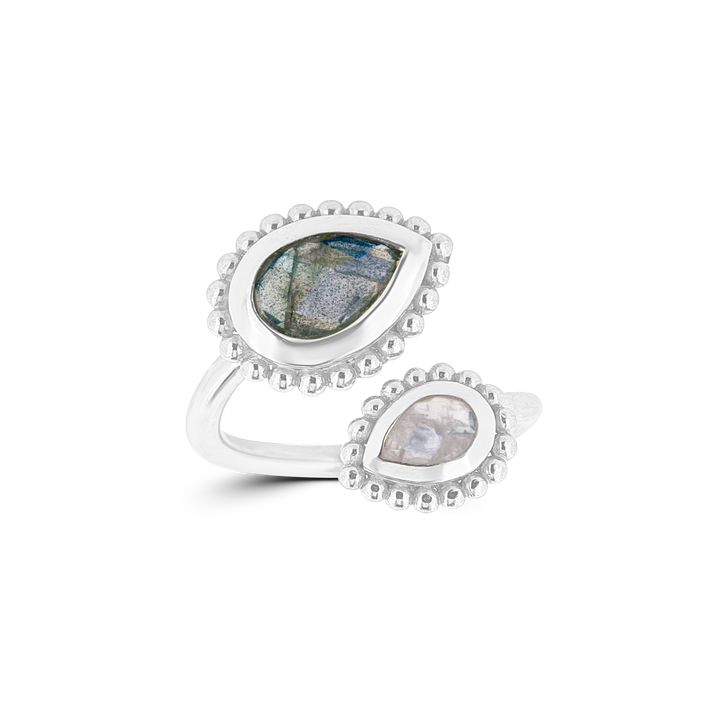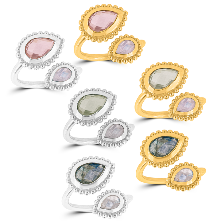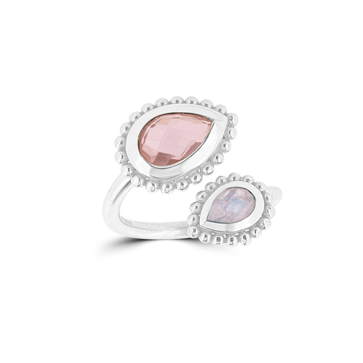 Füge einen Hauch von Eleganz zu deinem Look hinzu, mit dem Silberring Tropfen facett jetzt erhältlich in Grösse 52. Dieser stilvolle Silberring mit Rosenquarz und Regenbogenmondstein Tropfen facett verleiht deinem Outfit einen funkelnden Touch. 💍✨