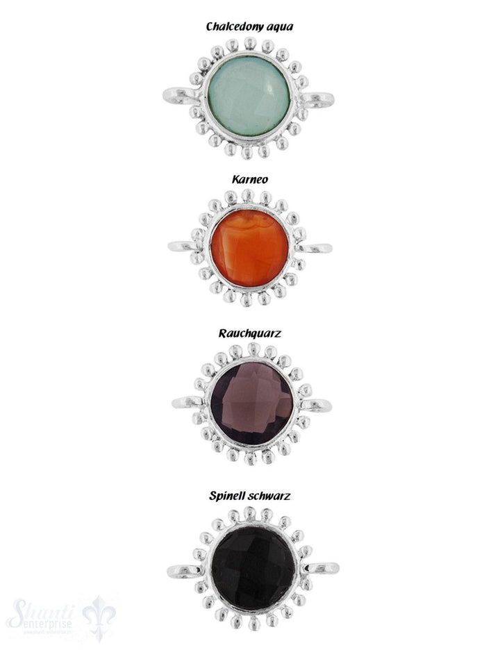 Silberteil mit Doppelösen mit facettiertem Stein 22 x15 mm Rand gross gepunktet